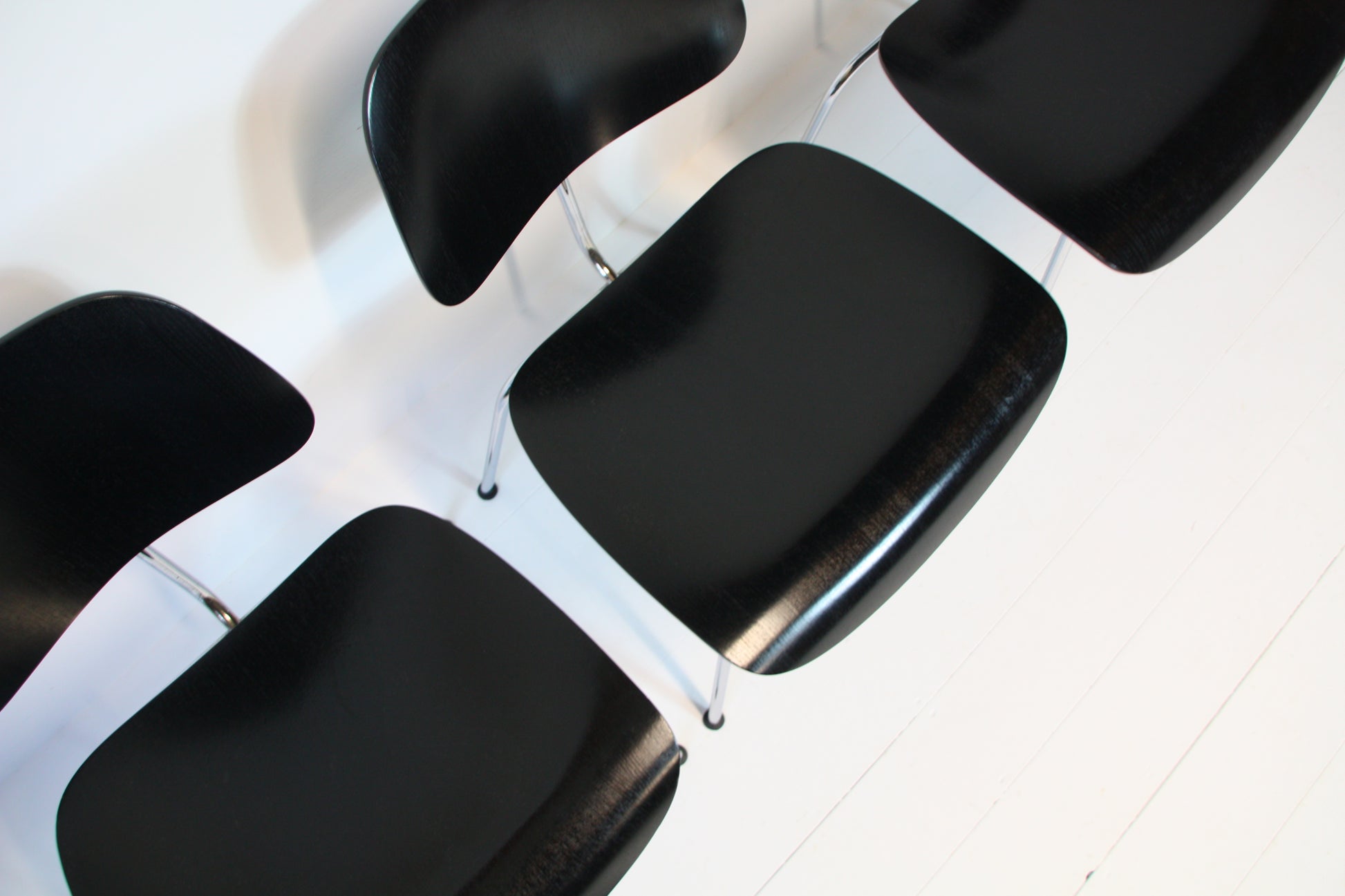 4 Eames DCM Black Ash & Chrome Dining Chairs by Vitra