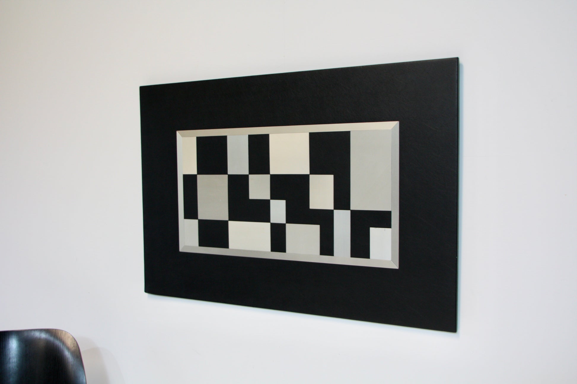 Fantastic 1970s artwork by B.A Moseley. Made from vinyl wrapped board with abstract aluminium shapes. A really unique and eye catching piece. A great addition to your interior.