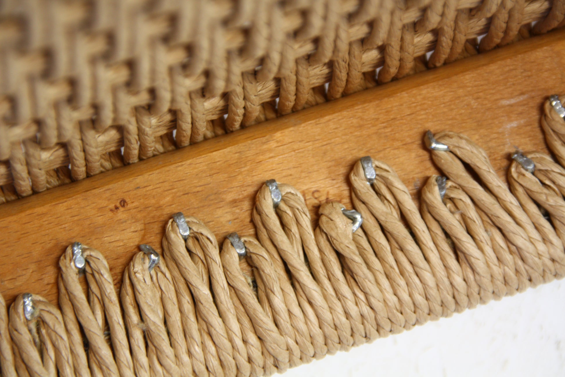 Condition: A1 Showroom condition. Structurally perfect. Solid teak frame has been stripped and re polished resulting in a warm gentle luster. Papercord seating in A1 condition having been professionally re corded. Original makers mark present to the underside ensuring authenticity. Collects example and a great investment piece.