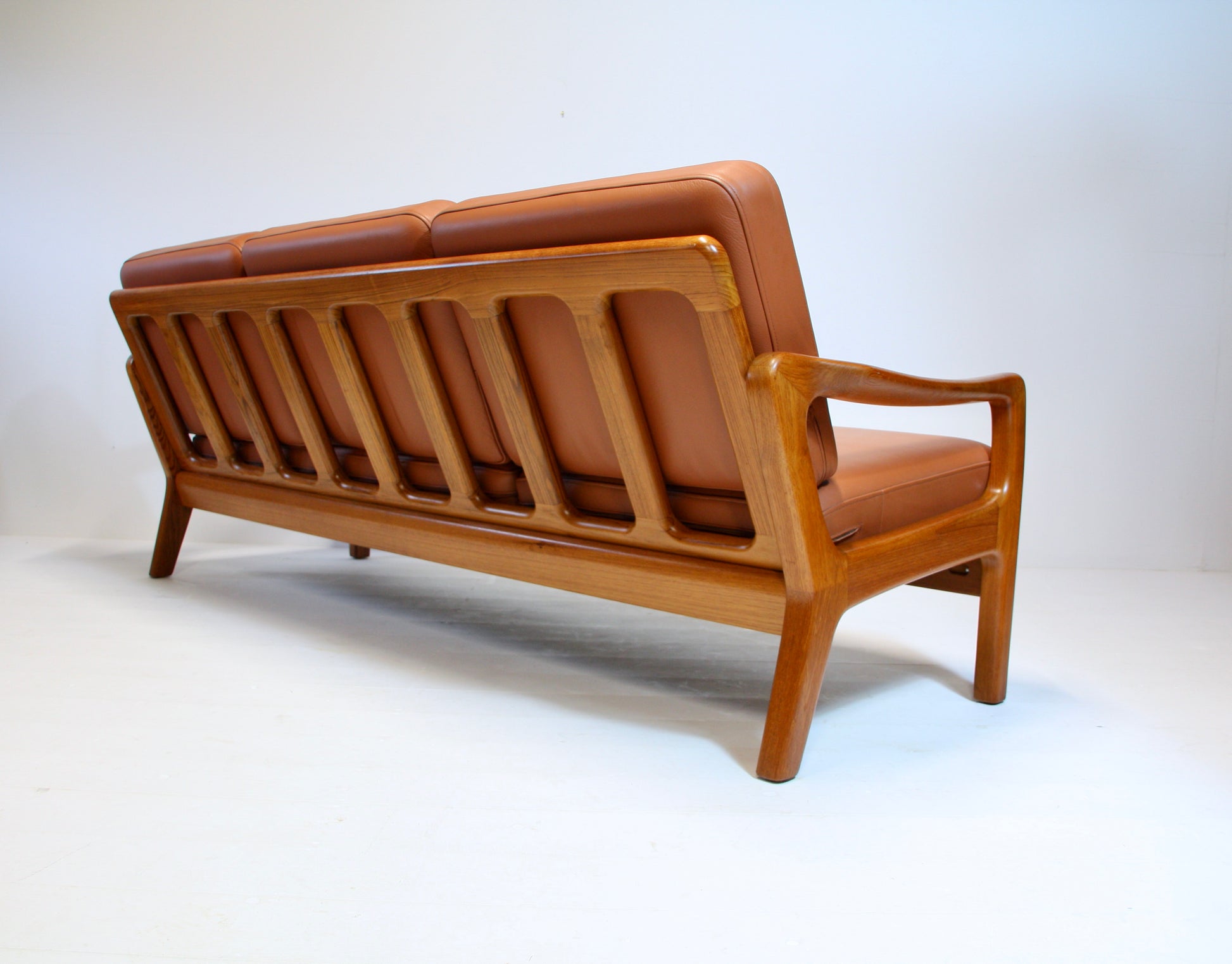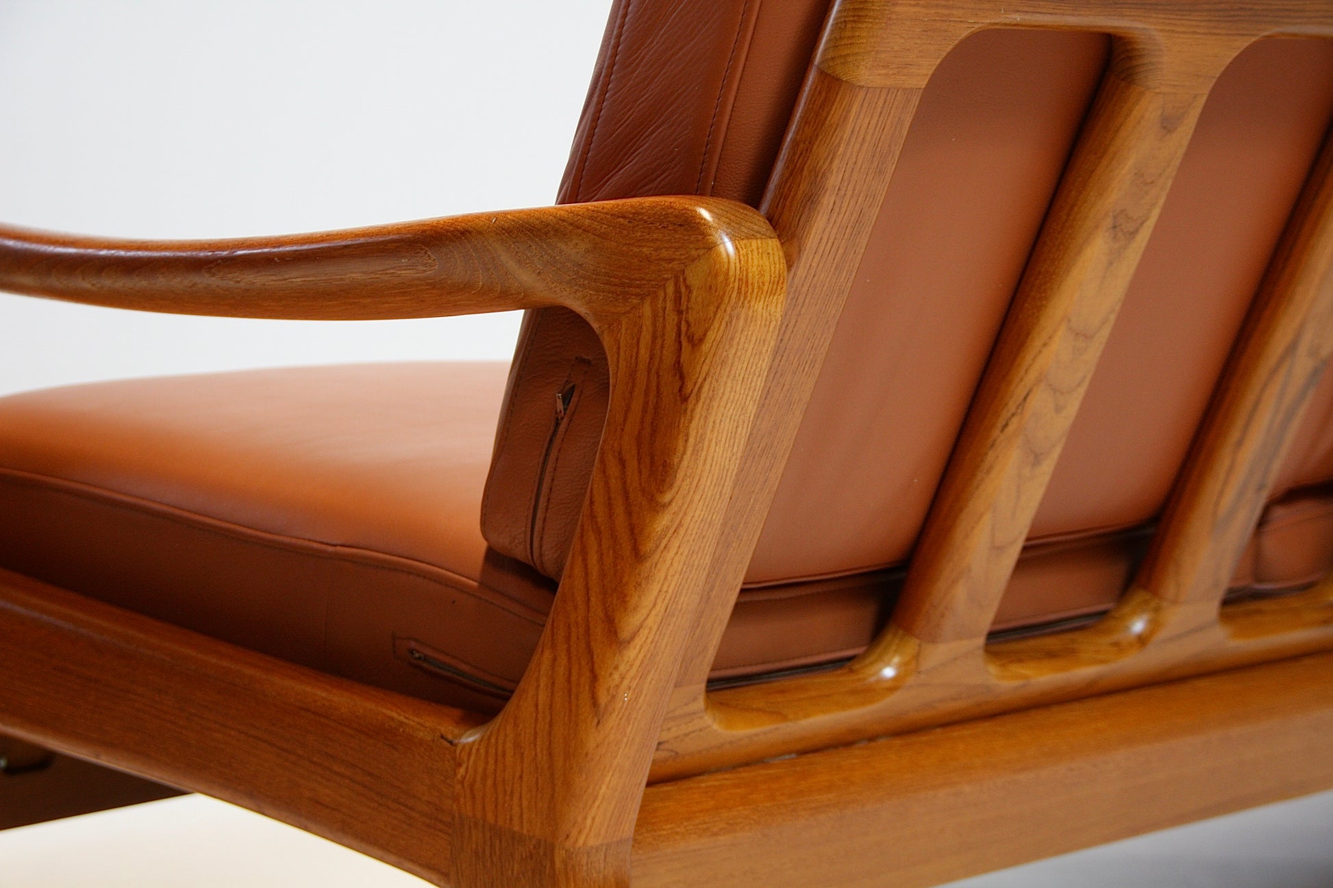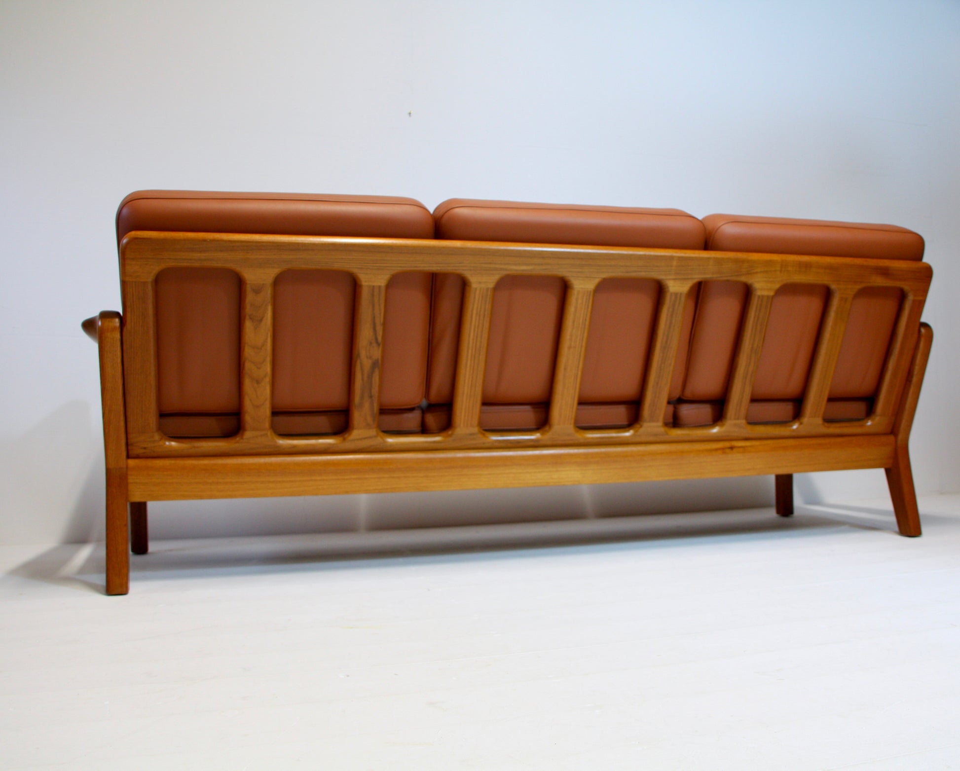SOLD - Danish Tan Leather Sofa by Juul Kristensen - Solid Teak c.1970