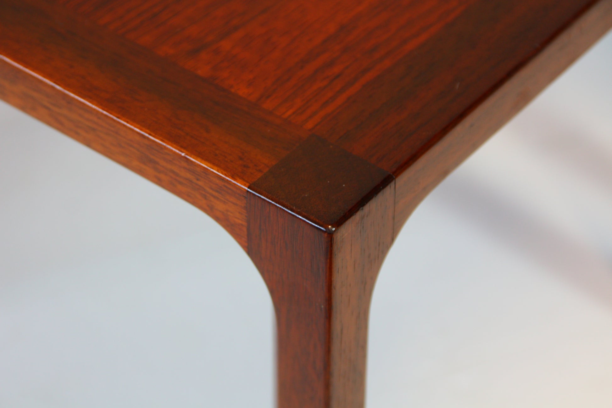 3 Danish mid century nesting tables designed by Kai Kristiansen for Vildbjerg Møbelfabrik c.1960. Constructed from beautifully figured rosewood with captivating joinery. A supreme quality set of tables from one of Denmark's most influential designers of the 20th century.